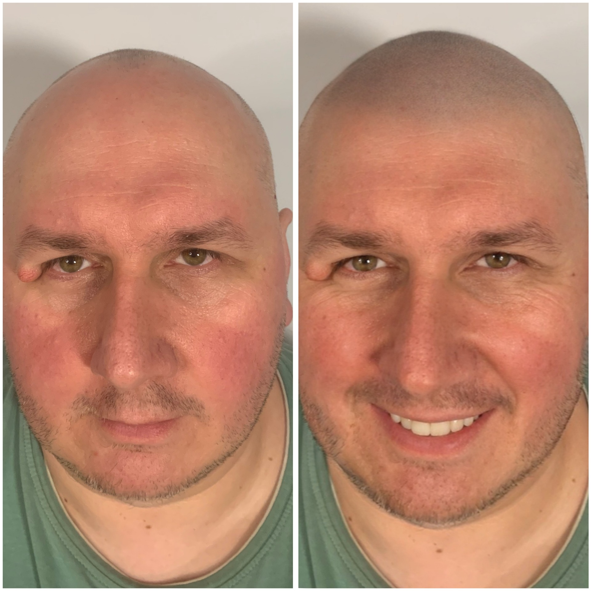 Ön megmondaná, hogy ez egy teljesen kopasz fej volt kezelés előtt és ez nem valódi borosta?